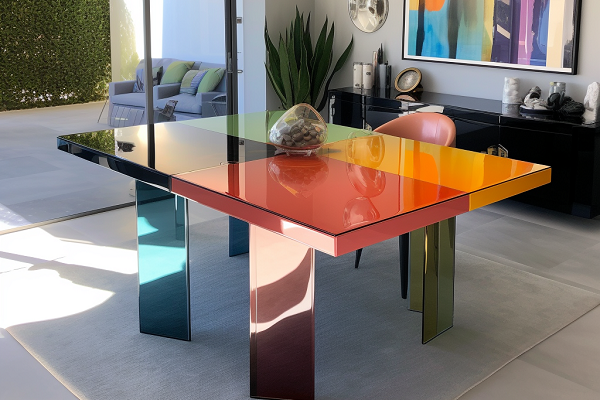 Kính sơn mặt bàn không chỉ có công năng sử dụng mà còn tạo điểm nhấn màu sắc, giúp bàn ăn, bàn trà hoặc bàn làm việc trông nổi bật và cao cấp hơn.