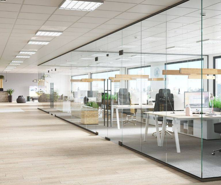Giúp tạo không gian riêng nhưng vẫn đồng bộ với tổng thể văn phòng hiện đại. Đây là ứng dụng phổ biến của hệ vách kính trong office partitions.