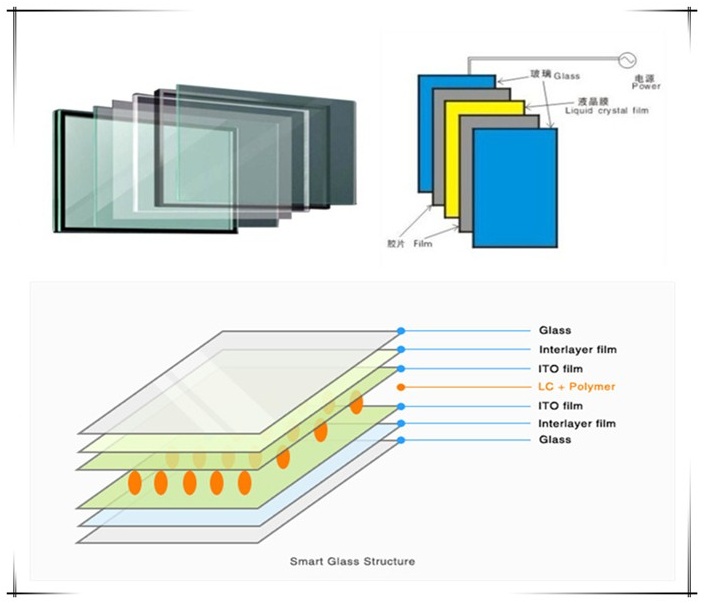Kính điện PDLC thường được cấu tạo từ hai lớp kính bên ngoài, ở giữa là lớp phim PDLC chứa tinh thể lỏng phân tán trong polymer. Ngoài ra, kính còn tích hợp lớp dẫn điện trong suốt, dải dẫn điện ở mép kính, dây dẫn và bộ nguồn điều khiển để chuyển đổi trạng thái trong – mờ khi sử dụng. Một số hệ còn có thể làm dưới dạng kính dán hoàn chỉnh hoặc phim dán bổ sung lên kính có sẵn, tùy cấu hình thi công.